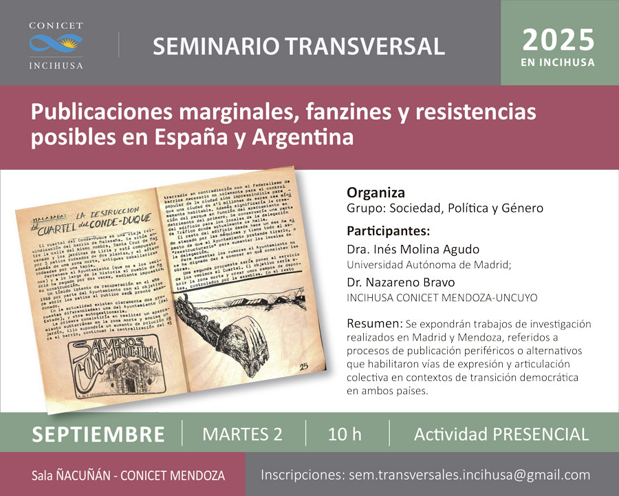 Los seminarios transversales constituyen ámbitos de relación e interrelación internas. Su propósito es fomentar la integración de los grupos de trabajo de la UE a los efectos de promover el conocimiento global de las líneas de investigación que se desarrollan en el INCIHUSA.